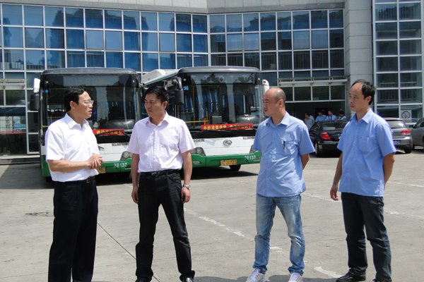 圖為集團(tuán)公司副總經(jīng)理周峰在客運(yùn)中心公交站督察公交運(yùn)營(yíng)、服務(wù)情況