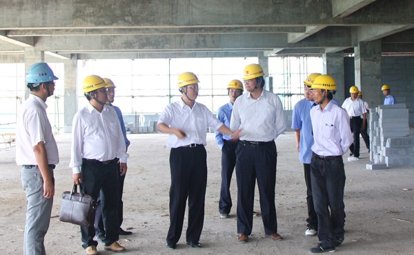 大樓順利封頂后,一行領導在蔡總的陪同下進入大樓內部實地調研察看