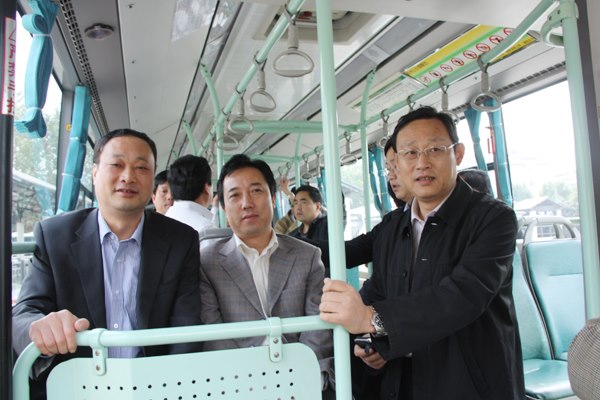 副秘書長沈小勇陪同南陽副市長賀國營乘坐快速公交