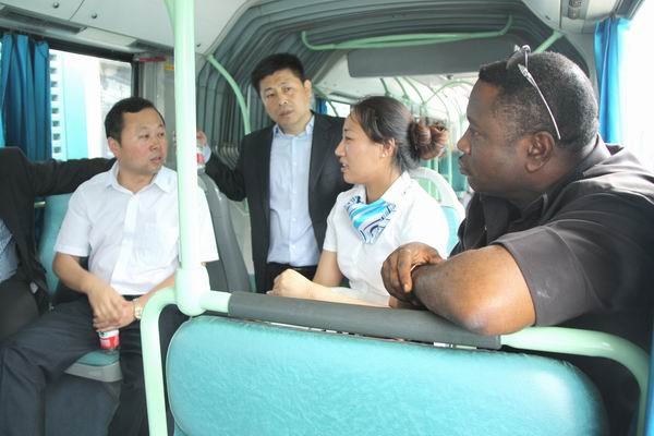 6月7日,由加納共和國(guó)地方政府和農(nóng)村發(fā)展部副部長(zhǎng)Elvis Afriyie Ankrah率領(lǐng)的代表團(tuán)來(lái)??疾煳沂泄话l(fā)展情況。代表團(tuán)一行參觀了快速公交調(diào)度指揮中心,考察了巴士公司修理廠,并乘坐體驗(yàn)了快速公交。公司副總經(jīng)理朱向軍陪同考察。