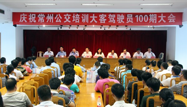 日前,集團公司專門召開了常州公交培訓大客車駕駛員100期的慶祝大會。市車輛管理所所長荊俊、副所長孫剛,市交通局運輸管理處駕培科科長張漢慶、副科長張云良以及集團公司董事長、總經(jīng)理蔡健臣,黨委書記袁杏娣、常務副總經(jīng)理孫魯明等領導和各相關部門負責人、駕訓隊第100期學員共200余人參加了會議。