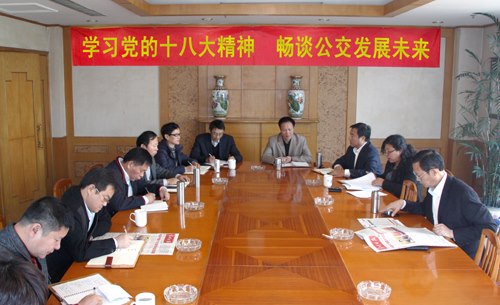 11月15日上午,常州公交組織召開黨委中心組(擴(kuò)大)會議,學(xué)習(xí)黨的十八大會議精神。黨委書記袁杏娣主持了會議。