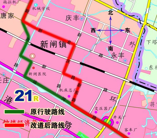 1、21路:由薛家公交中心站始發(fā),按原行駛路線(xiàn)行駛至新冶路拖拉機(jī)廠(chǎng)站后,調(diào)整行駛新龍路、新慶路、新昌路、新東路至運(yùn)河路后按原行駛路線(xiàn)至火車(chē)站公交中心站往返。撤消原新冶路(新龍路路口至新昌路路口)、新昌路(新冶路路口至新府路路口)、新府路、運(yùn)河路(新府路路口至新東路路口)行駛路段。同步撤消原武進(jìn)化肥廠(chǎng)、新閘鎮(zhèn)政府、新閘、機(jī)床廠(chǎng)上下行??空荆{(diào)整行駛路段增設(shè)常州荷園、新康花苑、新閘民營(yíng)工業(yè)園、新昌花苑上下行??空?。