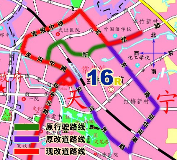 16路:同步為有效緩解施工期間五角場(chǎng)鐵路立交的交通壓力,公交16路線調(diào)整繞行晉陵中路行駛,至火車站后按原線行駛至麗華二村往返。調(diào)整繞行期間,臨時(shí)增設(shè)永寧花園、新天地花苑上下行??空?。