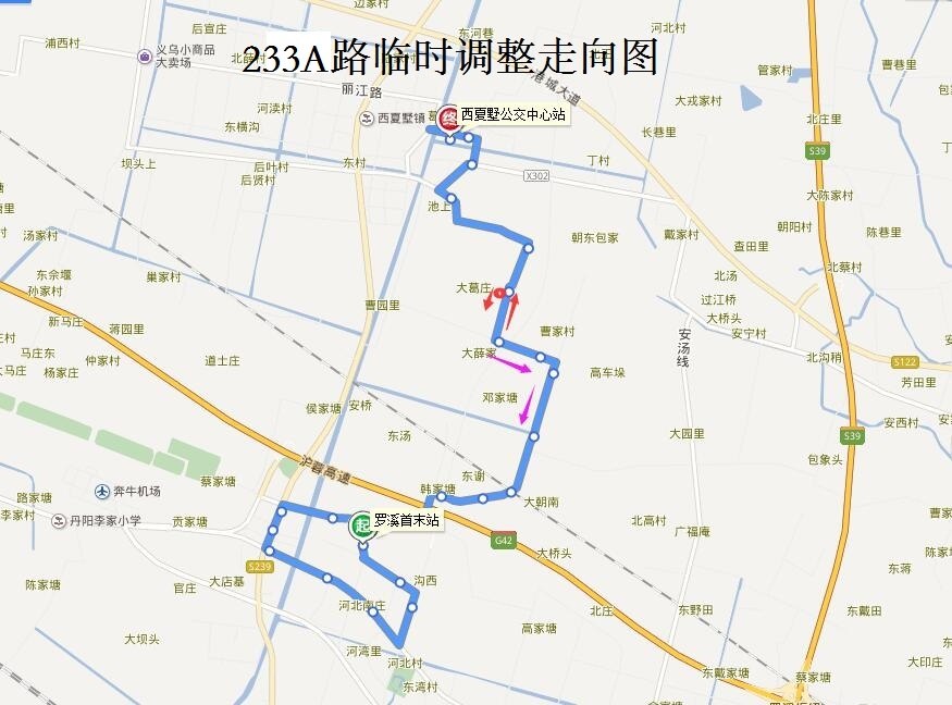 233A路:由羅溪首末站始發(fā),按原線行駛至 “東南村委”站后返回。臨時撤銷“ 王家、高巷里、西夏墅東站、西夏墅醫(yī)院、西夏墅公交中心站”雙向??空尽?br>