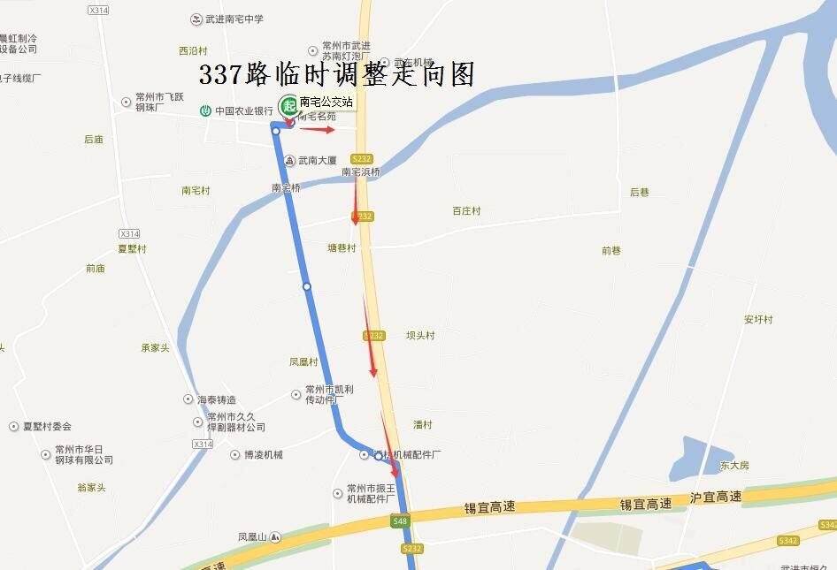 337路:由南宅公交站始發(fā),按原線路行駛至鎮(zhèn)南路路口后,調(diào)整行駛鎮(zhèn)南路、232省道至南潘公路路口恢復原線行駛至雪堰公交站往返行駛。臨時撤銷南潘公路(鎮(zhèn)南路—S232)行駛路段。同步撤銷“鳳凰村”、“潘村”雙向??空?調(diào)整行駛路段增設(shè)“塘巷村、鳳凰村東”雙向臨時??空?。