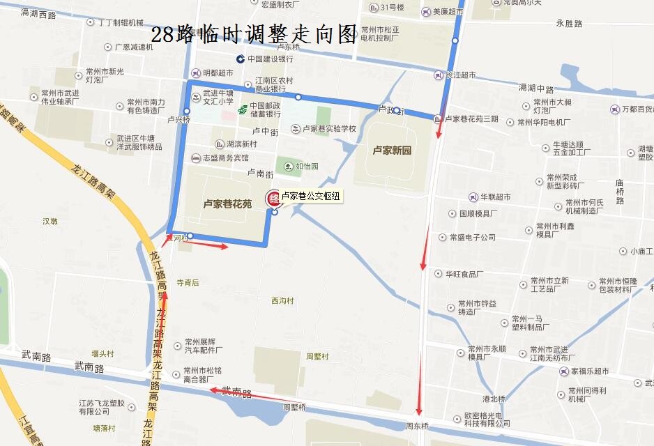 因盧政街(長(zhǎng)江路—湖濱路)封閉施工需實(shí)施交通管制,常州公交將于2017年9月15日起對(duì)涉及的28、71、501路公交作臨時(shí)調(diào)整,具體調(diào)整方案如下: