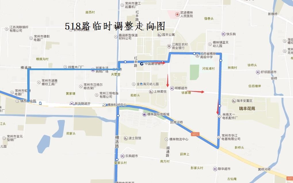 518路:由皮革城路橋(南洋廣場(chǎng))始發(fā),按原線路行駛至公園路順通路路口后,調(diào)整行駛順通路、水廠路至橫洛東路路口后恢復(fù)原線路行駛,臨時(shí)撤銷(xiāo)順通路(公園路—花苑路)、橫洛東路(花苑路—水廠路)行駛路段;同步撤銷(xiāo)“橫林高中、林南小學(xué)”雙向??空?調(diào)整行駛路段增設(shè)“橫林南”雙向臨時(shí)停靠站。