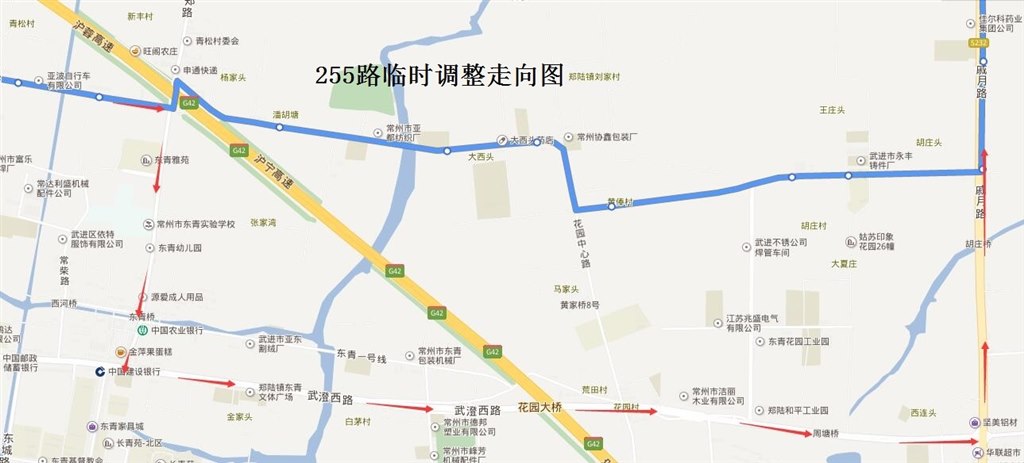 255路:由常州客運(yùn)中心始發(fā),按原線行駛至狄青線常焦線路口后,調(diào)整行駛常焦線、武澄西路、S232至劉家村線路口后恢復(fù)原線路行駛。臨時(shí)撤銷狄青線、劉家村線(常焦線—S232)行駛路段,同步撤銷“潘湖塘、慈墅橋、劉家村委、黃俸村、王莊頭、許家灣”雙向停靠站,調(diào)整行駛路段增設(shè)“船底灣、東青小學(xué)、周塘橋、西連頭”雙向及“東青醫(yī)院”東行、“東青”北行臨時(shí)??空?。