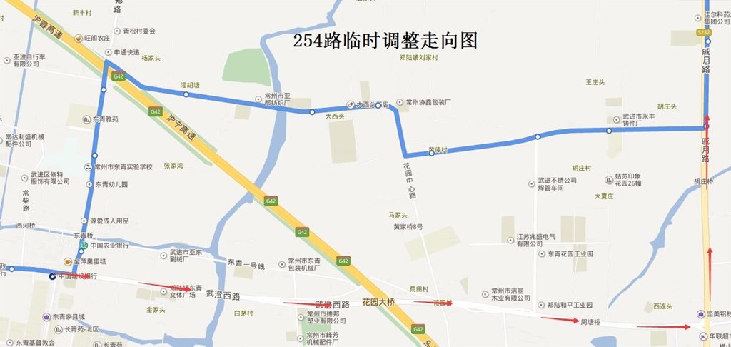 254路:由常州客運(yùn)中心始發(fā),按原線行駛至武澄西路常焦線路口后,調(diào)整行駛武澄西路、S232至劉家村線路口后恢復(fù)原線路行駛。臨時(shí)撤銷常焦線(武澄西路—狄青線)、狄青線、劉家村線(常焦線—S232)行駛路段,同步撤銷“東青小學(xué)、船底灣、潘湖塘、慈墅橋、劉家村委、黃俸村、王莊頭、許家灣”雙向及“東青”北行??空荆{(diào)整行駛路段增設(shè)“東青醫(yī)院”東行及“周塘橋、西連頭”雙向臨時(shí)??空尽?br>