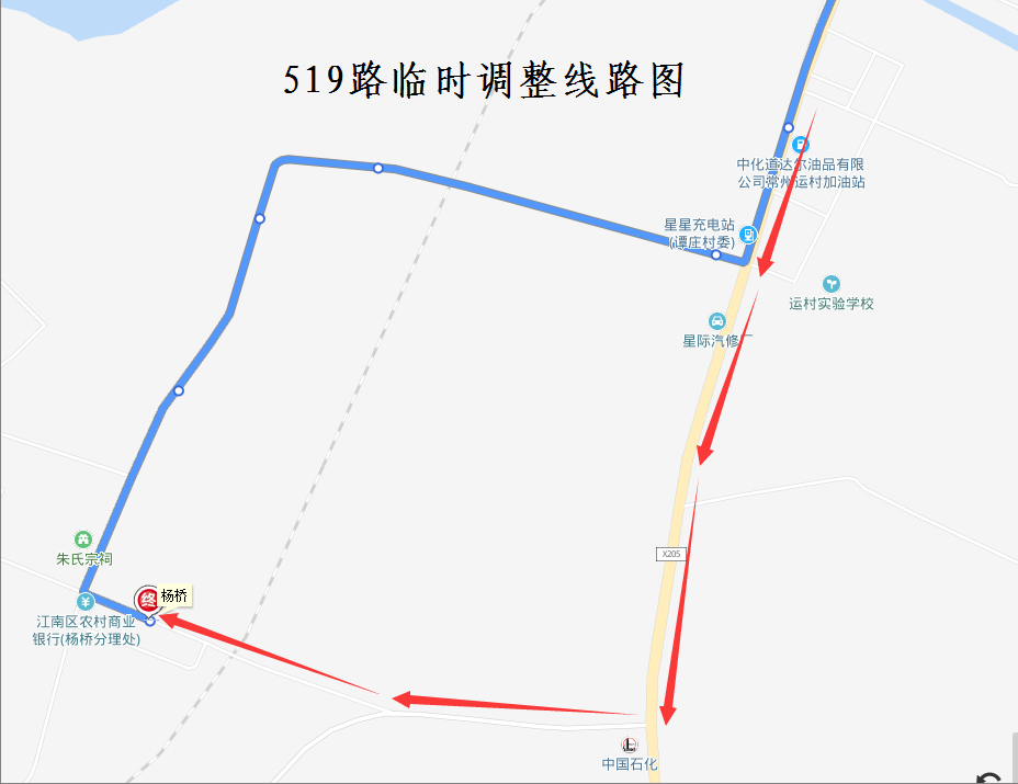 519路:由前黃公交中心站始發(fā),按原線路行駛至常漕公路鄉(xiāng)鎮(zhèn)道路路口后,臨時調(diào)整行駛常漕公路、鄉(xiāng)鎮(zhèn)道路,至楊橋返回。臨時鄉(xiāng)鎮(zhèn)道路(常漕公路—楊橋公交站)行駛路段,同步撤消“譚莊東、譚莊、禹家橋北、禹家橋”雙向??空?。