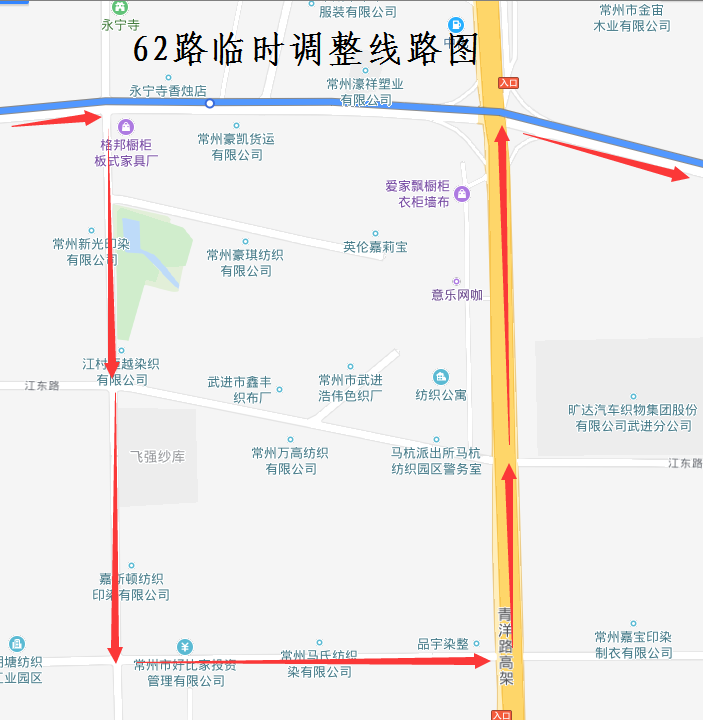 62路:由火車站公交中心站始發(fā),按原線路行駛至人民路鳳凰路路口后,調(diào)整行駛鳳凰路、輕紡路、青洋路至人民路路口后恢復(fù)原線路行駛。臨時(shí)撤銷人民路(鳳凰路—青洋路)行駛路段,“永寧寺”雙向站點(diǎn)臨時(shí)遷移至鳳凰路上???。