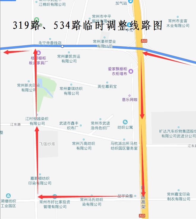 534路:由湖塘科技產(chǎn)業(yè)園始發(fā),按原線行駛至人民路青洋路路口后,調(diào)整行駛青洋路、輕紡路、鳳凰路至人民路路口后恢復(fù)原線路行駛。臨時(shí)撤銷人民路(鳳凰路—青洋路)行駛路段, “永寧寺”雙向站點(diǎn)臨時(shí)遷移至鳳凰路上??俊?br>